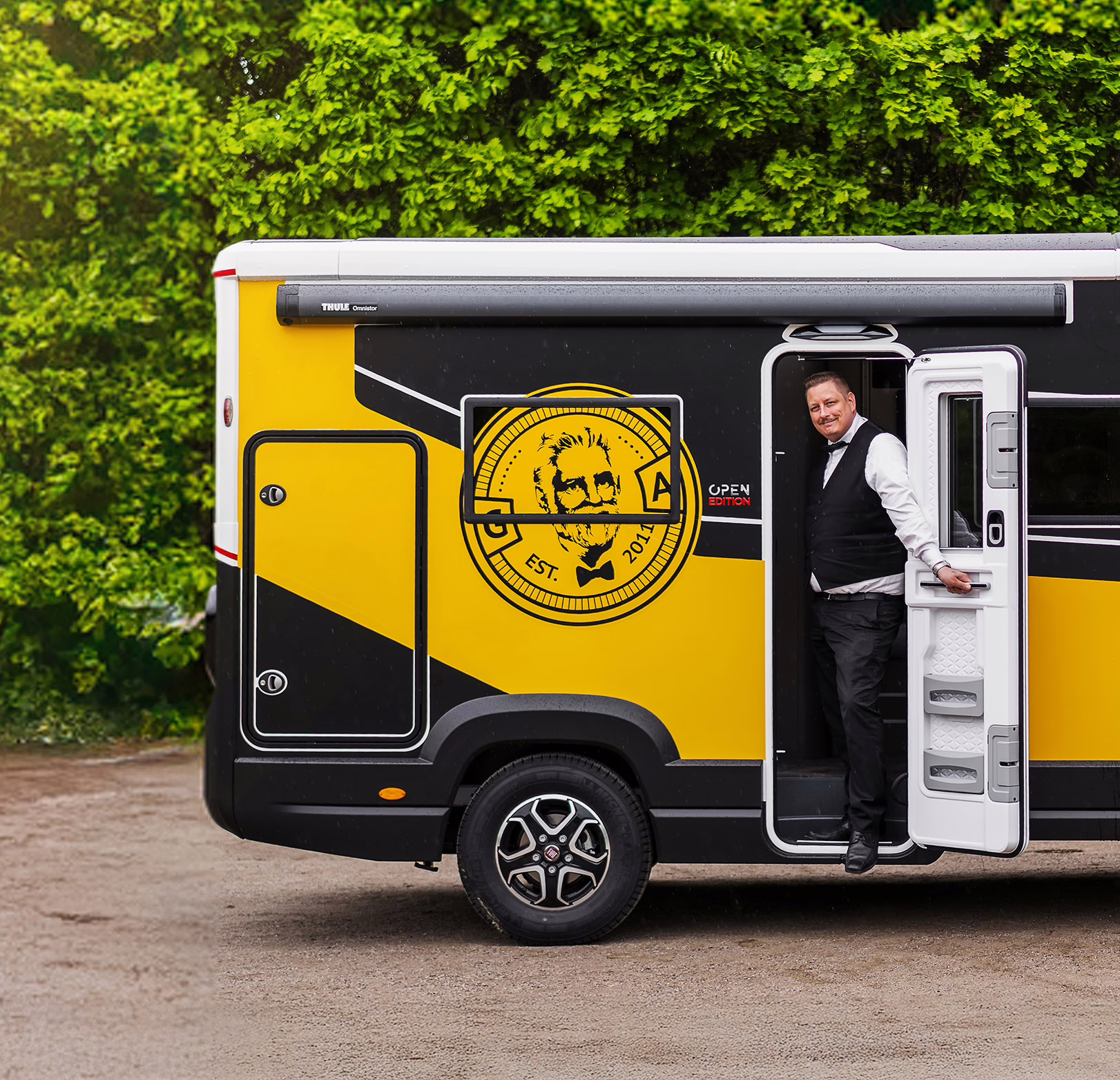 You’ll have no trouble spotting us — the Gold Adam vehicle is clearly branded, and we stop at scheduled times in nearby parking lots or other convenient locations.